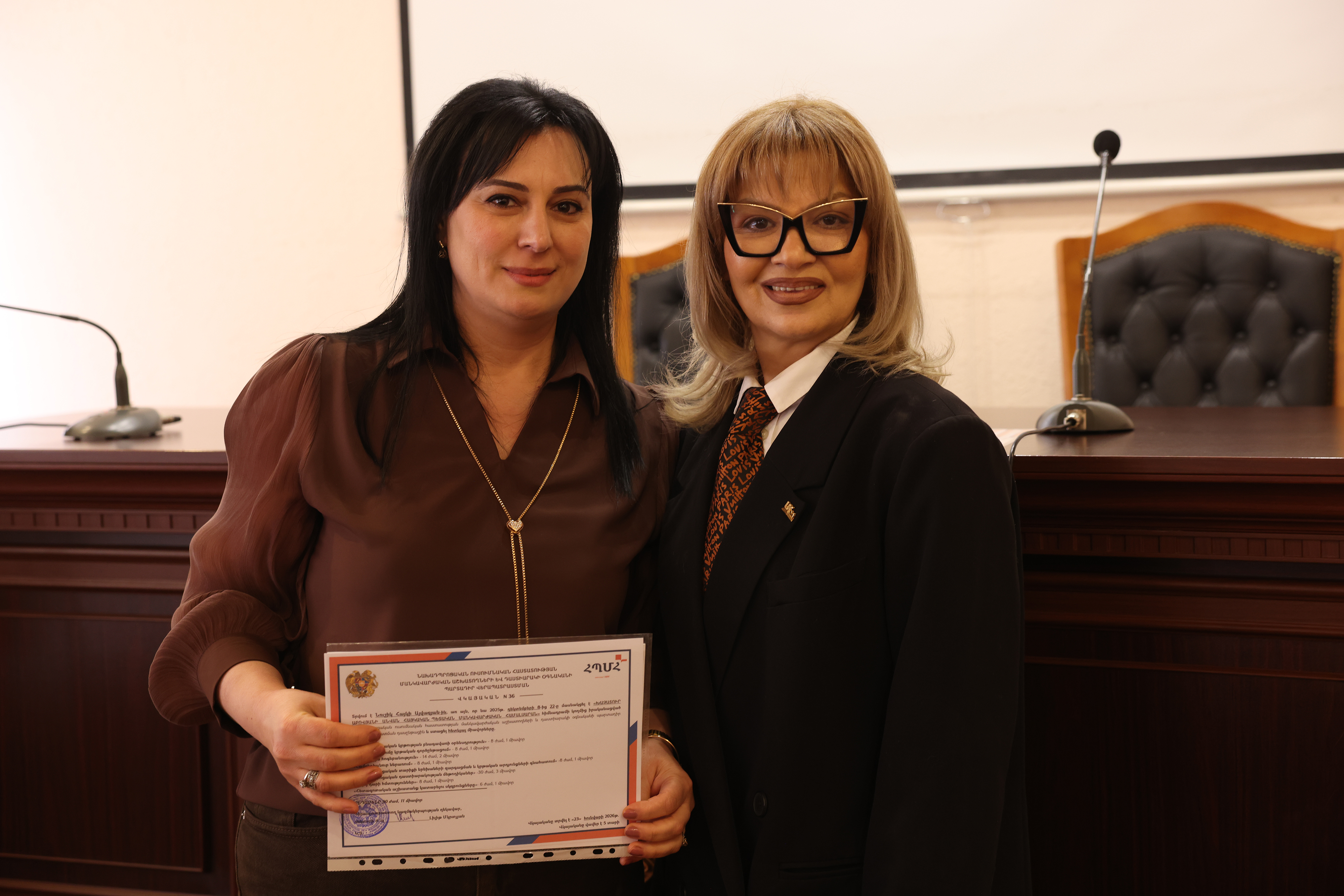 Այսօր «Նախադպրոցական ուսումնական հաստատության մանկավարժական աշխատողների և դաստիարակի օգնականի պարտադիր վերապատրաստման» դասընթացի 70 մասնակից ստացավ հավաստագիր։