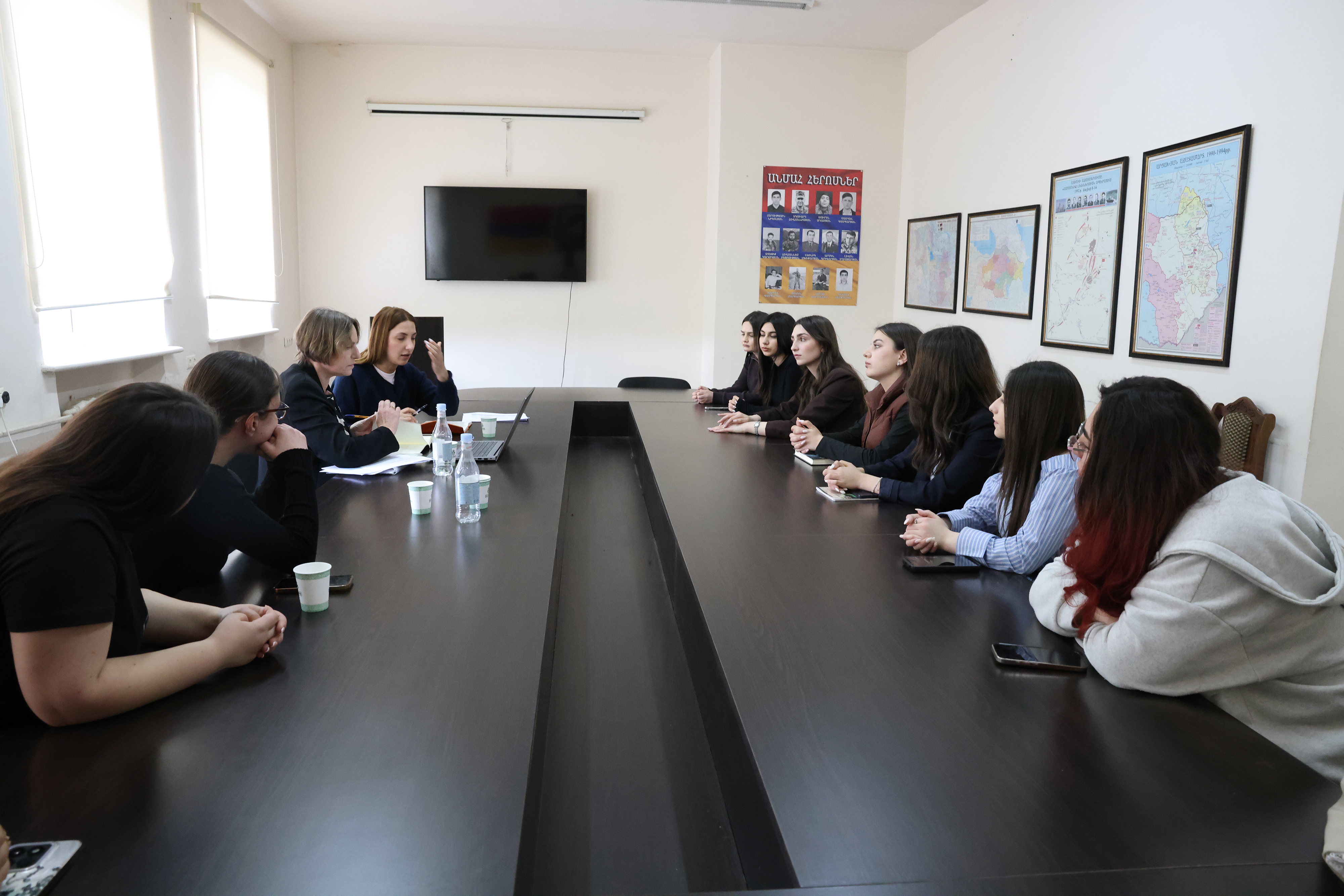 Կրթության որակի ապահովման և զարգացման կենտրոնի աշխատակազմի հետ հանդիպմանը կառույցի ղեկավար Անի Հակոբյանը միջազգային փորձագետներին ներկայացրեց բուհի որակի ներքին ապահովման քաղաքականությունը, ընթացակարգերը, իրականացված աշխատանքները, գործընթացի արդյունավետությանը միտված մեխանիզմները։
