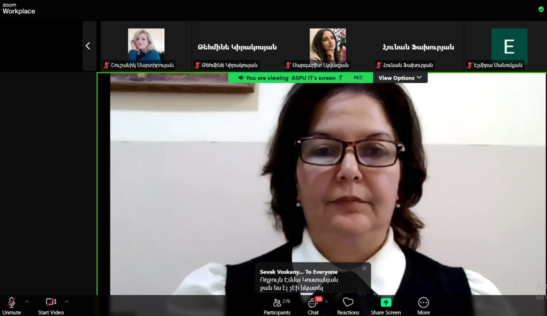 Առցանց հանդիպման ընթացքում եղավ հարց ու պատասխան, իսկ ամփոփեցին հոգեբանական գիտությունների դոկտոր, պրոֆեսոր Վլադիմիր Կարապետյանը և հոգեբանական գիտությունների թեկնածու, դոցենտ Վահան Սարգսյանը: